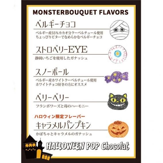 これら人気のポップショコラが、ハロウィン限定のモンスターグッズに大変身!見た目も楽しく、可愛らしいデザインで、パーティーなどのイベントシーンにぴったりです。お友達や家族と一緒に楽しんだり、プレゼントとして贈ったりするのにも最適です。