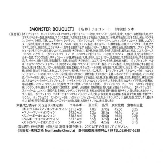 ハロウィンポップショコラMONSTER BOUQUET 5本詰め合わせは、ハロウィン限定のポップショコラを5本セットにした魅力的な商品です。静岡産の苺を使用したストロベリーEYE、ハロウィン限定フレーバーのキャラメルパンプキン、ベリーベリー、ベルギーチョコ、スノーボールといったバラエティ豊かなフレーバーが楽しめます。